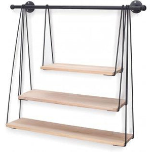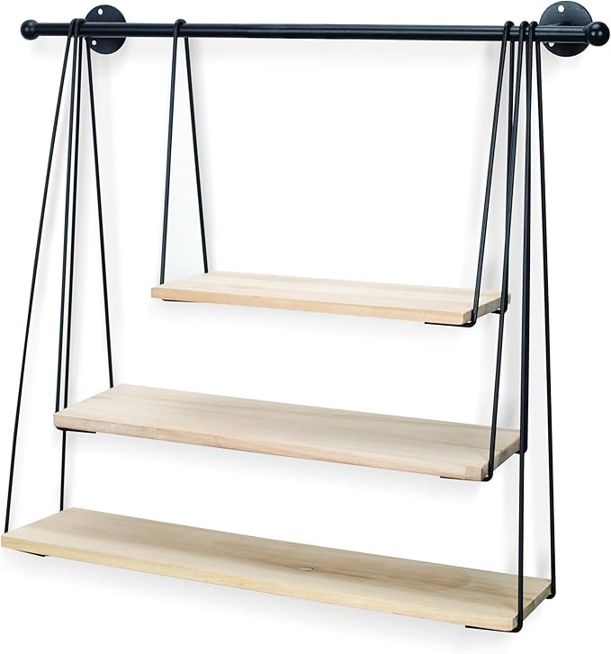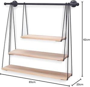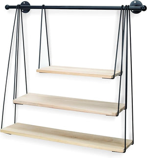 Etajera de perete GIFTDECOR Wired Swing, metal si lemn, 67.5x62 cm, negru-natur