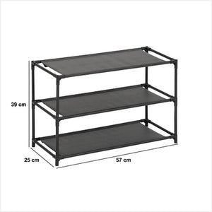 Etajera pentru pantofi cu 3 compartimente, material textil si cadru metalic, negru, 57x25x39 cm
