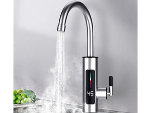 Incalzitor electric instant pentru apa, robinet bucatarie cu afisaj LCD, 3000W, 220V, aluminiu periat