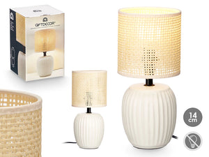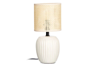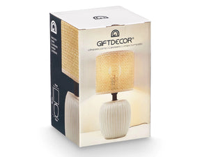- Lampa are o baza din ceramica alba cu dungi discrete, ideala pentru interioare moderne sau clasice.