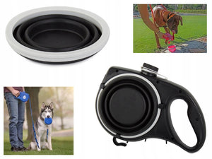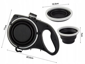 Lesa 5 in 1 pentru caini si pisici, cu recipient apa 300 ml, bol silicon pliabil 400 ml, suport pungi si carlig, 135 cm