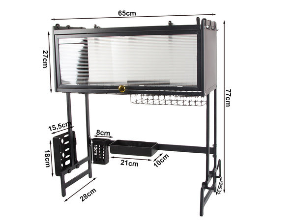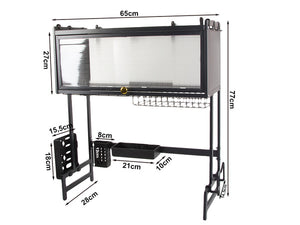 Uscator vase si farfurii 65 cm, organizator mare deasupra chiuvetei, cu usa transparenta si ventuze antialunecare